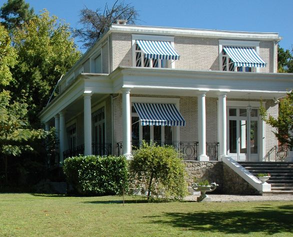 La caractéristique la plus visible sera la sobriété des volumes. La droite et le plan sont prépondérants malgré la présence de courbes semi-circulaires. Le toit est généralement plat., une pergola très géométrique souligne souvent la terrasse ou l’entrée. C’est toute la façade, dans sa blancheur, qui accroche la lumière et non les éléments décoratifs comme dans l’architecture pittoresque. Un porche inclus dans le volume et souvent agrémenté d’une colonne précède fréquement la porte d’entrée.